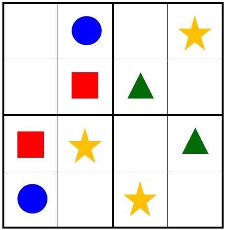 Задача: расставить фигуры так, что бы они не повторялись в ряду.