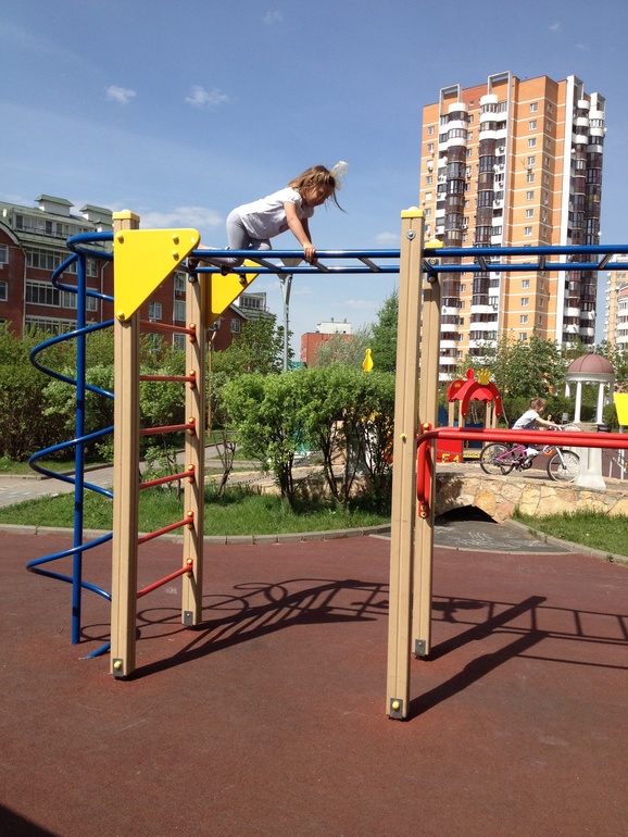 Папа ей еще года полтора назад разрешал так лазить, а я все сомневаюсь. Но он спокойный, а я мама-псих.
