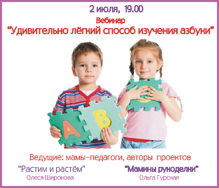Для Вас выступят опытные мамы-педагоги:Олеся Широкова с темой "Удивительно лёгкий способ изучения азбуки".