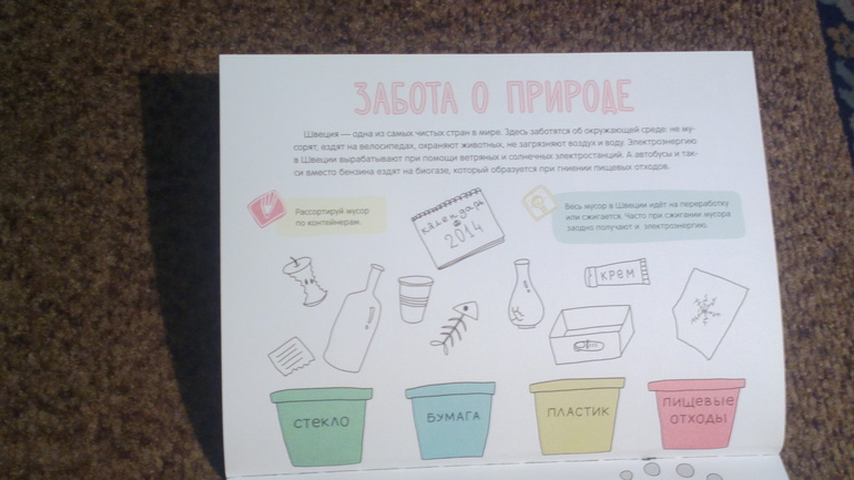 А еще мы узнали, что Швеция-одна из самых чистых стран в мире. Люди там заботятся об окружающей среде - не мусорят, охраняют животных, ездят на велосипедах, не загрязняют воду и воздух. И в одном из заданий мы сортировали мусор по контейнерам, нашли объекты, которые загрязняют окружающую среду и объекты, которые приносят пользу.
