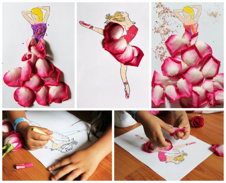 ТворчествоХмурым дождливым днем решили с Настей создать красивые наряды из лепестков роз.