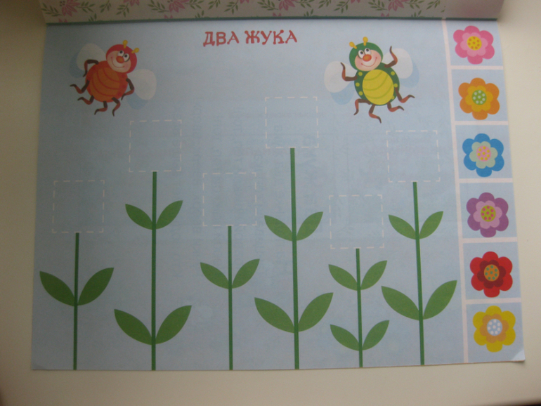 В ней 8 сюжетных заготовок, в которые нужно вклеить что-либо квадратной формы. Сбоку сначала нужно вырезать эти квадратики, вот это-то меня и привлекло. Малыш (2,5 года) сам вырезает и наклеивает элементы.