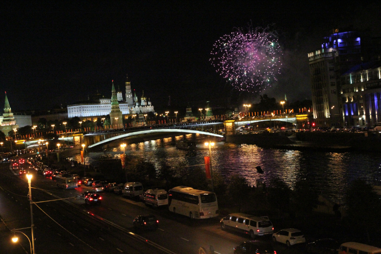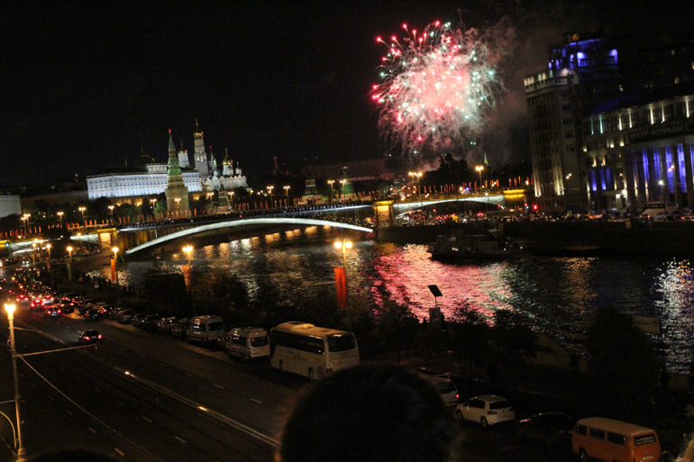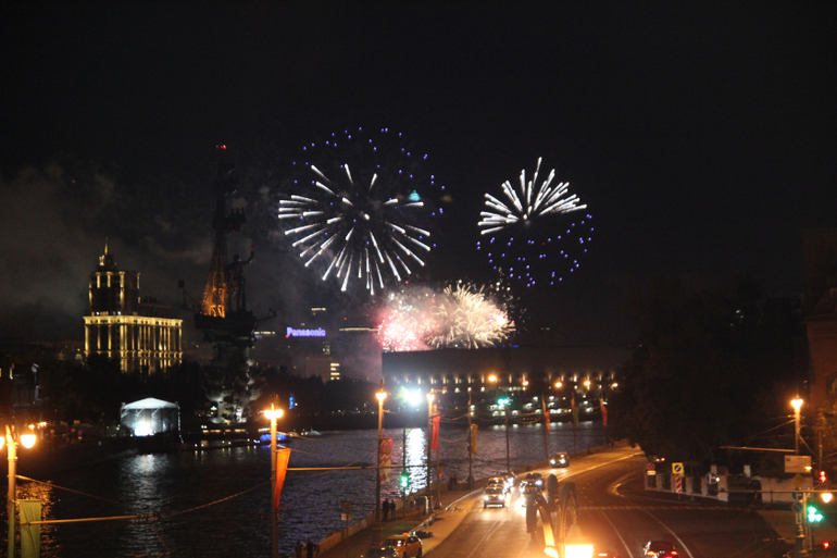 И кульминацией праздника явился САЛЮТ! Долго мы думали с какой точки будем его наблюдать. В итоге на троллейбусе от ВДНХ доехали до Храма Христа Спасителя. Настя уже притомилась, но ради салюта терпела. Почему то он был поздно(((((