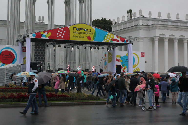5 сентября мы с Настей посмотрели трансляцию праздника с Красной площади, затем обед, дневной сон... И, несмотря на невзгоды и унылую погоду, поехали на ВДНХ в город детей - Город придумщиков!