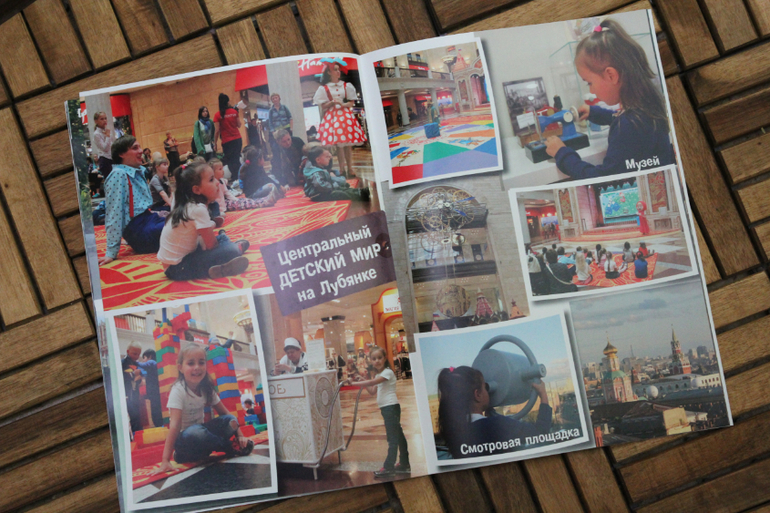 В прошлом году я печатала коллажи на обычных А4. Получилась пачка листов, далее дырокол... и сшила ленточкой в "книгу".