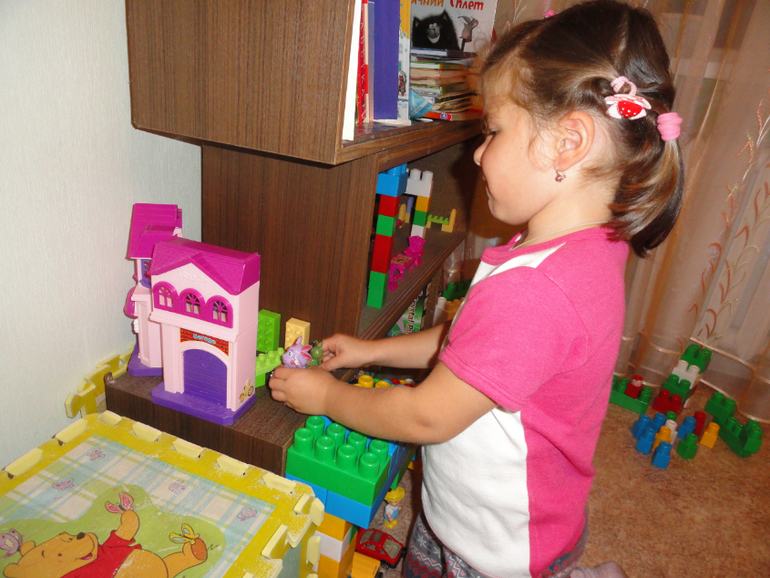 Дальше Катя уже играла в садик со своим любимым героем Лунтиком. Вспомнили распорядок дня и правила поведения.