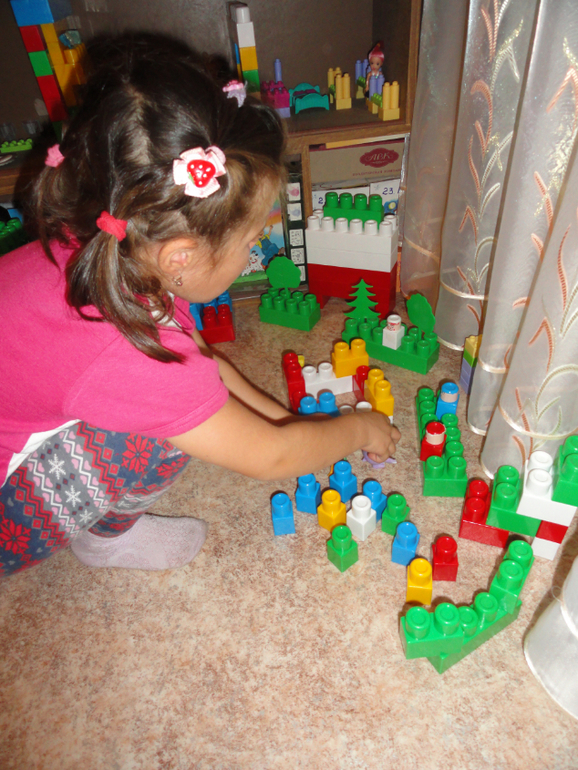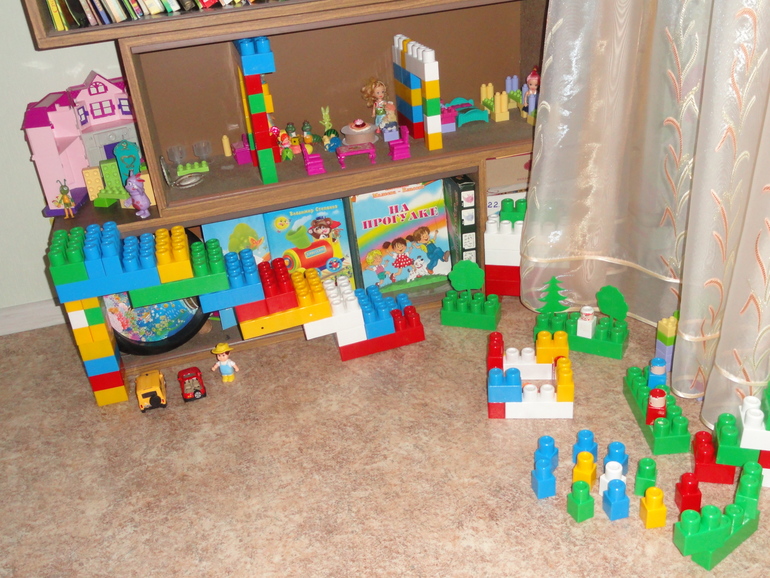 Детский садВ прошлом году перед посещением сада впервые мы много играли, чтоб легче адаптироваться. В это лето мы долго отдыхали, так что успели отвыкнуть от садиковской жизни. Вот и пришло мне в голову и в этом году поиграть тоже перед первым днем сада. Вот такой детский садик на полке игрушек получился.