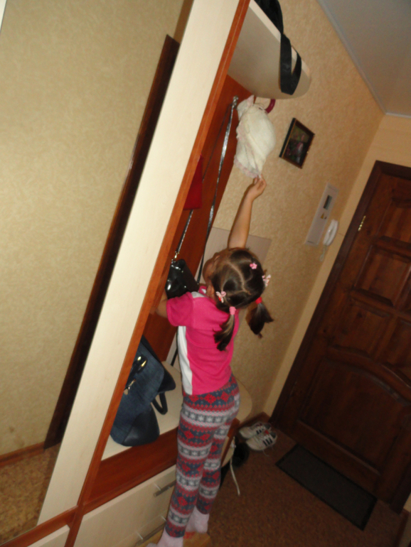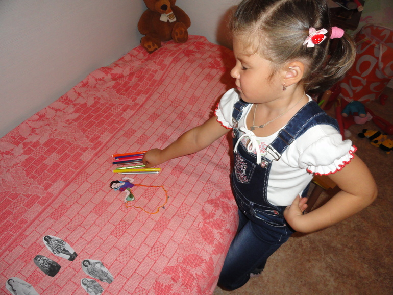 И искали для куклы идеальную юбочку для кофточки. Выбирали по цвету карандаша и искали в интерьере. Не очень её эта игра заинтересовала. Я думала. понравится.