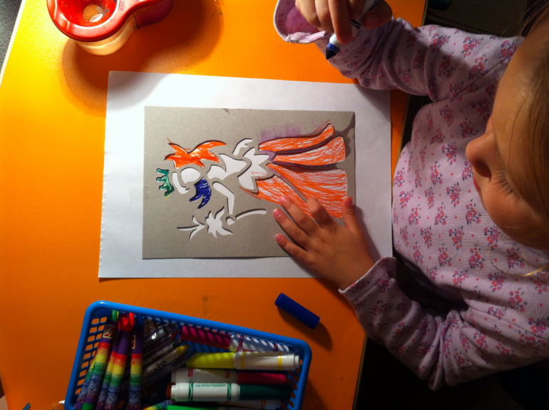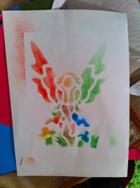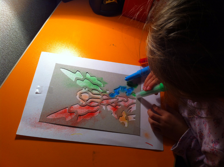 Рисовали по шаблонам просто фломастерами и из выдувных фломастеров, хорошо в качестве дыхательных упражнений. Соню результат очень впечатлил, когда трафарет убираешь