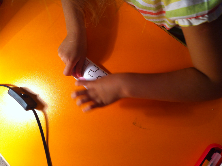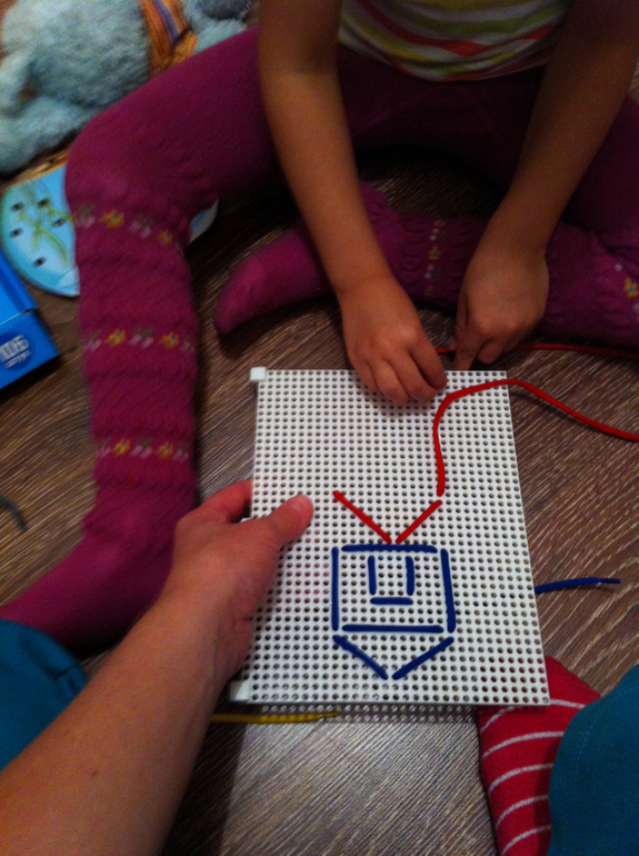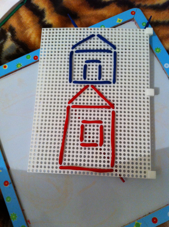 Но пришиванием дело не закончилось, я показала Сонечке как нужно "вышивать", ее это дело очень заинтересовало, она это восприняла вообще как волшебство какое-то и кстати тут тоже есть над чем детской головке подумать, не так то просто ей было соображать, что "иглу" нужно продеть снизу и еще в определенную дырочку. Планшет кстати от мозаики.