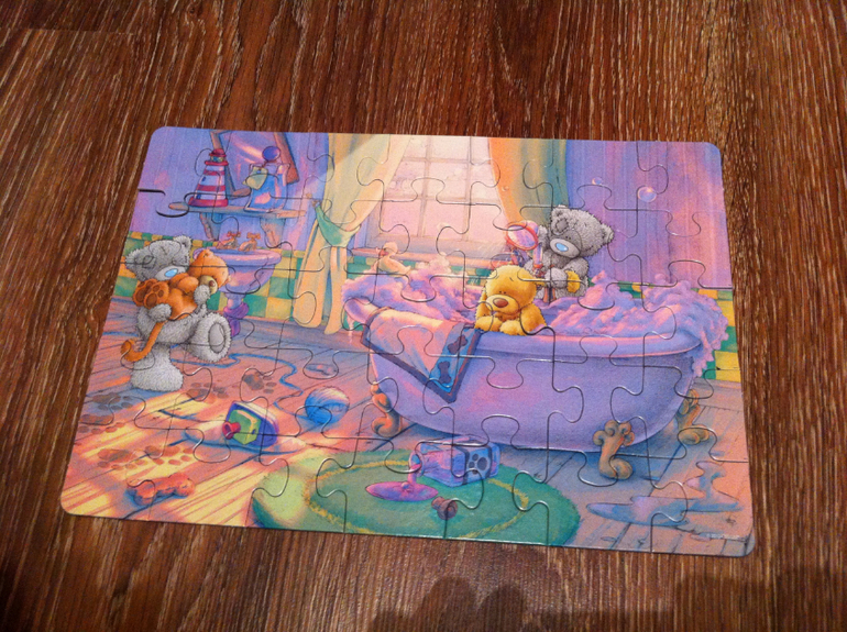 Пазл с мишками ей не удалось собрать самой, трудноват, так как цвета размытые, как бы одинаковые по всей картинке
