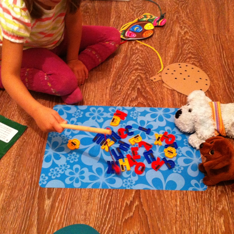 Потом поиграли в букворыбалку... отловленную рыбу запускали в свой аквариум
