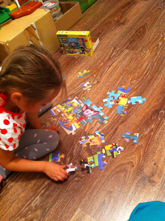 Ну еще мы просто собирали пазлы.... Наконец то Софьюшка полюбила это дело, а то прям раньше никак не хотела. Спокойно собирает пазлы из 30 деталей, с моей помощью на 60 деталей. Моя помощь заключается в подборе деталей по фрагментам
