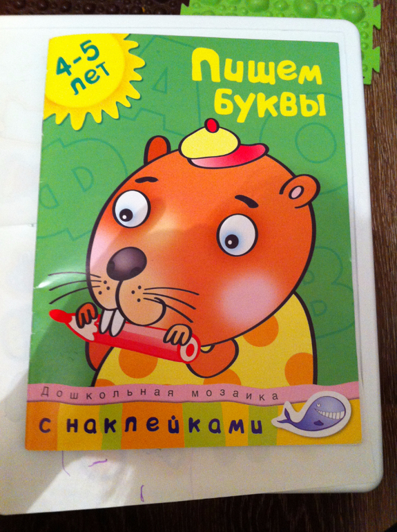 Тренировались писать буквы по тому пособию. Для первого написания букв мне оно очень нравится, удачное, с наклейками.