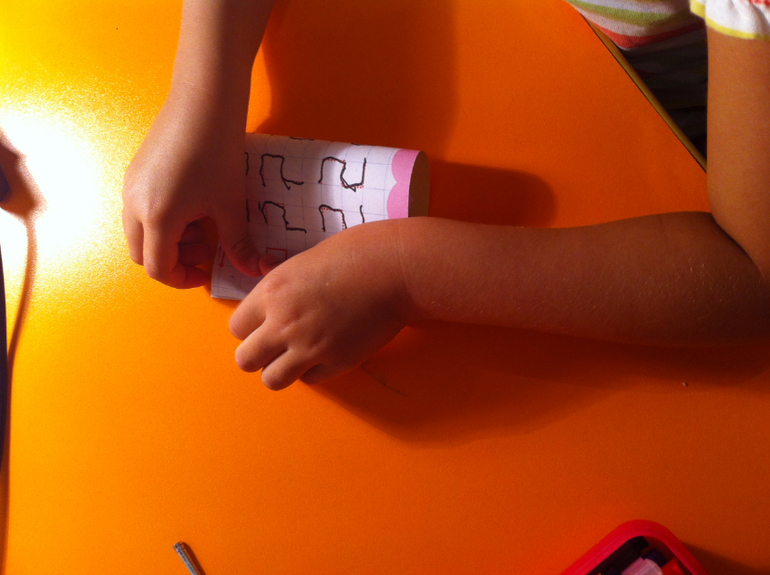 Потом врач выписывает маме рецепт и складывает его в четыре раза. Для рецепта вырезала материал из прописей