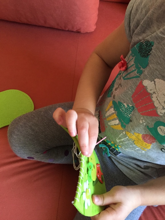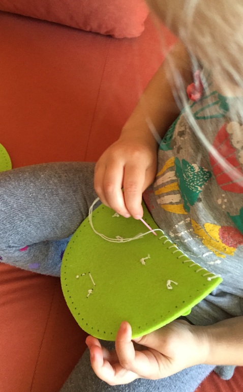 Но вчера Олеся шила по-настоящему и без моей помощи! Ведь в наборе безопасные иглы:)