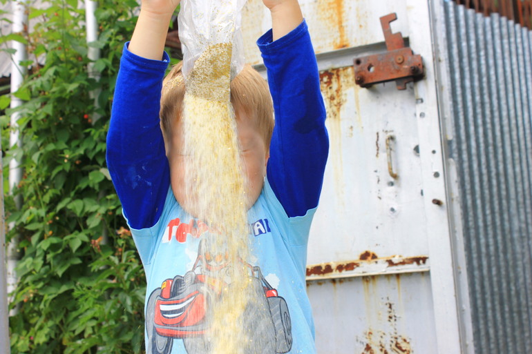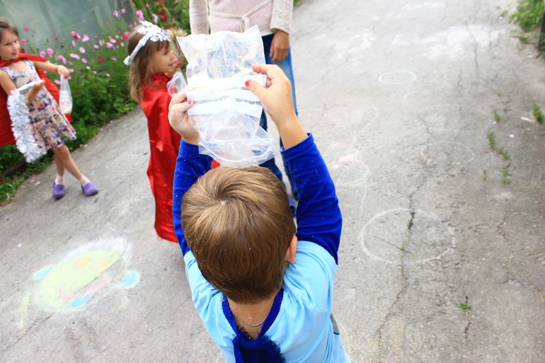 Мои дети играли в фей летом, по собственной инициативе. Выдала им волшебную пыльцу-блестки с манкой. Тема на полном серьезе высыпал ее всю на себя и вернулся в дом грустный "мама,ты нас обманула,это не настоящая пыльца, я так и не полетел"