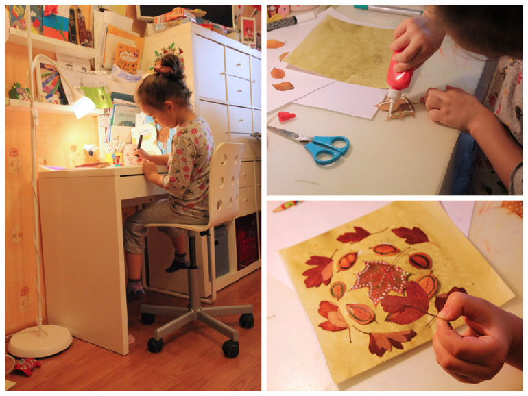 Это Анастасия за своим рабочим местом. Не хватает табурета (под ноги), который утащила для своих игр младшая сестренка - Катюша.