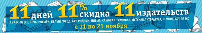 На 11 дней с 11 ноября Май-шоп делает участвуют издательства «Айрис-пресс», «Арт-Родник», «АСТ-Пресс», «Белый город», «Детская литература», «Нигма», «Речь», «Росмэн», «Самовар», «Тимошка», «Эгмонт Россия».