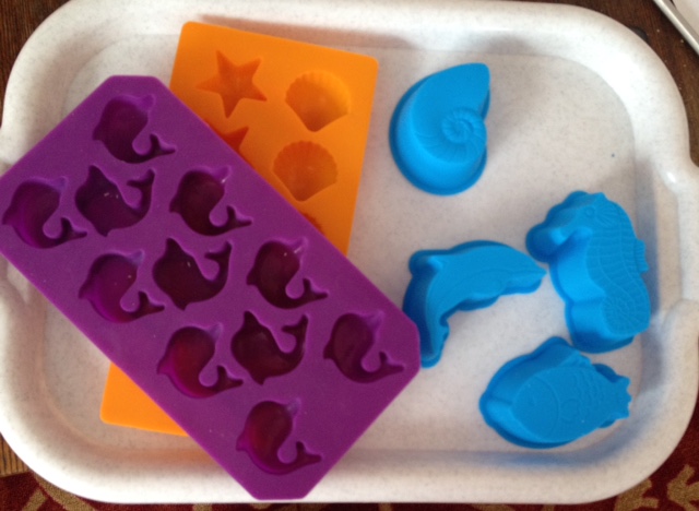 Я сделала для детей тесто для лепки, из которого мы лепили разных морских животных и рыб. Силиконовые формочки нам помогли в этом:) Также делали дельфинчиков и морских обитателей изо льда для игр в ванной во время купания