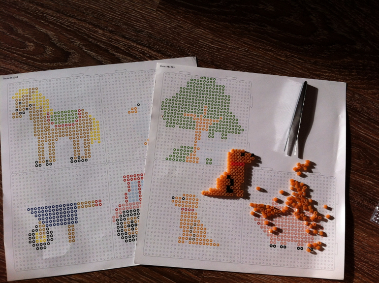 Еще делали вот такую собачку из термомозайки. Для очень мелкой моторики.
