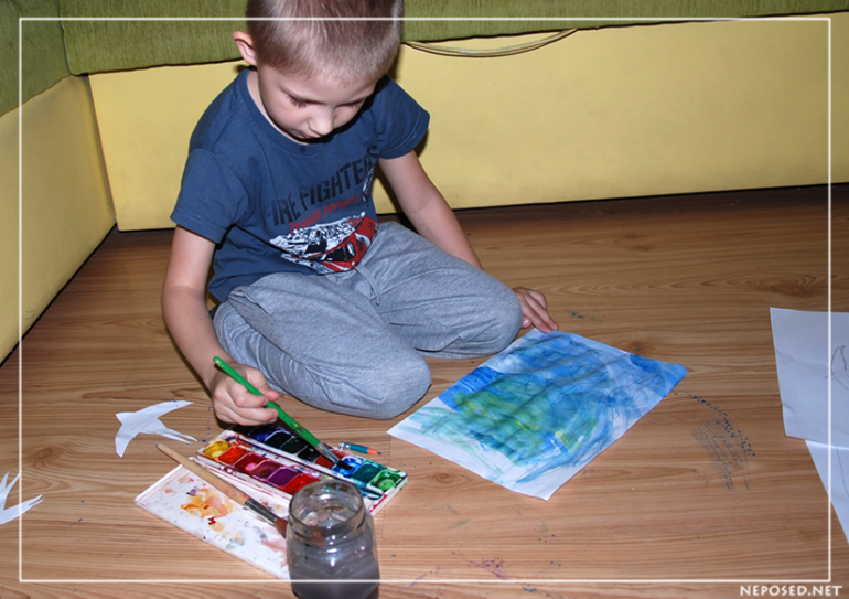 Для этой работы очень важно чтобы бумага и краски были хорошего качества. У нас обычная.