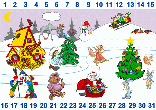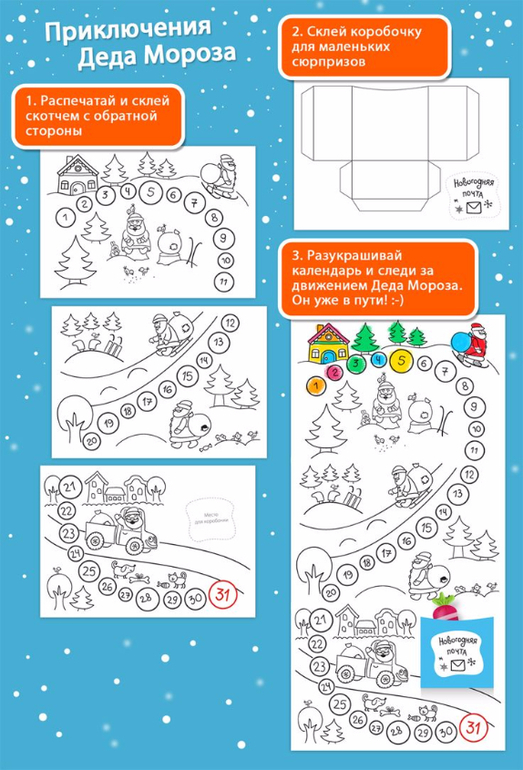 В условиях недостатка времени или же если мама абсолютно уверена в том, что "руки у нее растут не оттуда":), можно легко и быстро сделать адвент-открытки. Разумеется, вы не сможете положить в него сюрприз, а вот написать задание, обозначить событие-сюрприз или зашифровать место нахождения подарочка вполне реально!