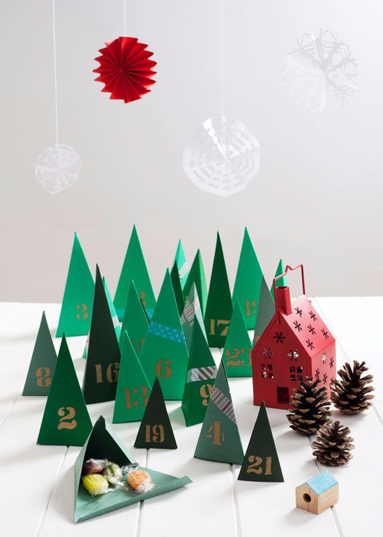 Их можно повесить на веревочку острым носиком вниз или же просто расставить, спрятав под них подарочки.