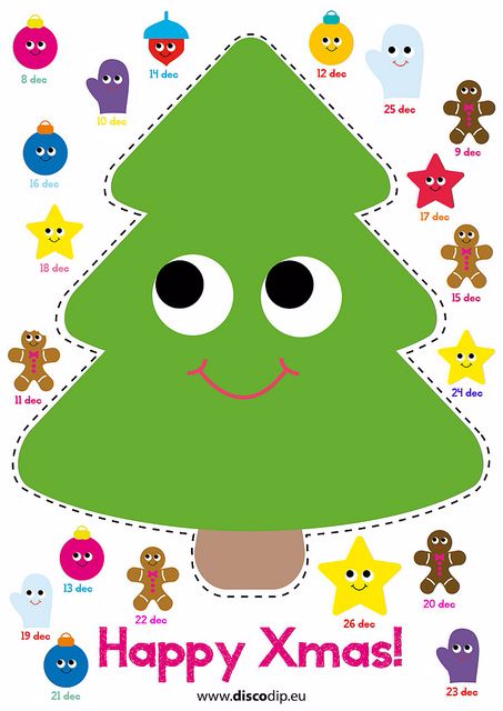 Наполнение календаря может быть очень разным. Для самых маленьких это могут быть просто небольшие сюрпризы и подарочки или посильные задания. Например, вы можете сделать адвент в виде небольшой елочки и каждый день ребенок будет доставать по одной игрушке из кармашка и наряжать елочку.