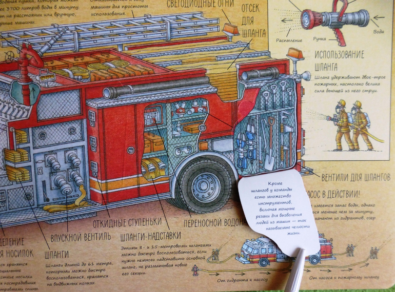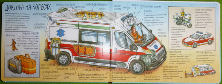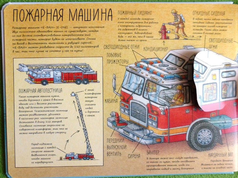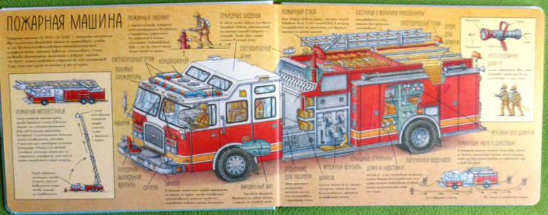 Книга долгоиграющая, возрастная аудитория от 3 лет. Старшим дошкольникам и школьникам будет интересно изучить технику в деталях, узнать о внутреннем строение спасательных машин, малыши с удовольствием рассмотрят картинки, познакомятся для начала с общим понятием, что такое техника и какой она бывает.