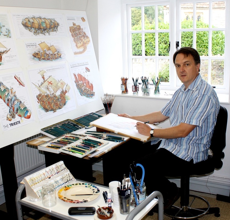 Рисунки в книге легендарного иллюстратора Стивена Бисти, автора бестселлера «Чудесные сечения» и других известных книг: "Книга дальних странствий", « В поисках золотого города», серия книг "История в разрезе" Рим, Египет, Греция - в этой серии умение художника позволяет нам увидеть то, что обычно остаётся за страницами учебника, излагающего историю человечества, как список дат и имён великих людей. Мы можем получить представление о том, что из себя представляла обыденная жизнь людей древности, в каких домах они жили, на каких кораблях плавали, по каким улицам ходили, где совершали покупки, как развлекались и в каких храмах молились своим богам. Каждая новая книга с иллюстрациями С.Бисти - это событие для читателей! Более подробно с работами Стивена Бисти можно познакомиться на его официальной странице