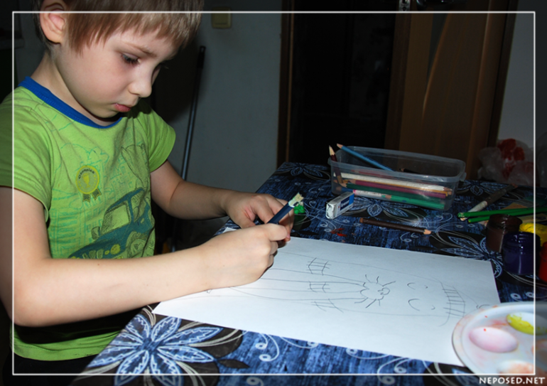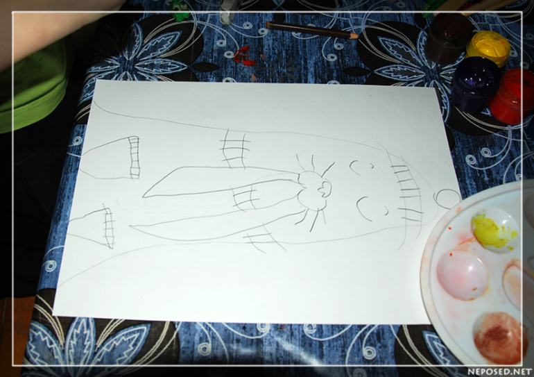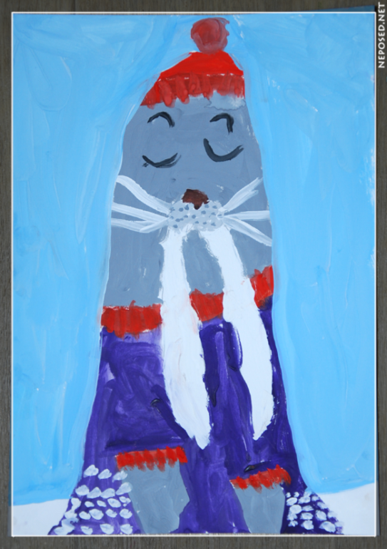 ТворчествоУговорила Даню вчера вечером порисовать вместе красками по видео мастер-классу. Слева на голубом фоне его морж, на жёлтом мой.