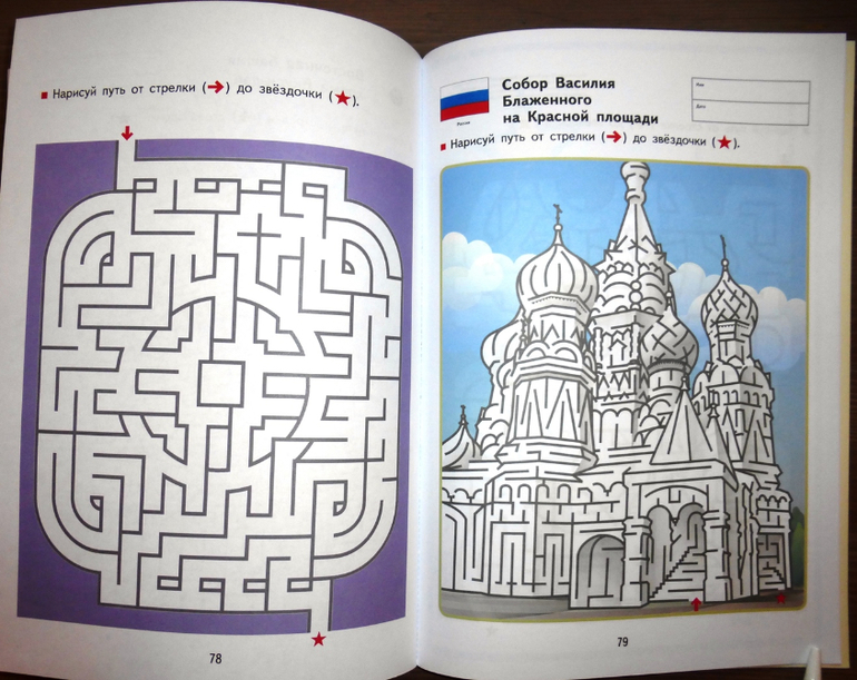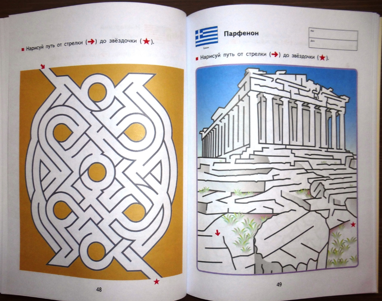 Работая с этой тетрадью, можно проводить одновременно тематические занятия по знакомству ребенка со странами и памятниками культуры. Было бы отлично подобрать живые фотографии каждой достопримечательности и показать их ребенку перед прохождением лабиринта.