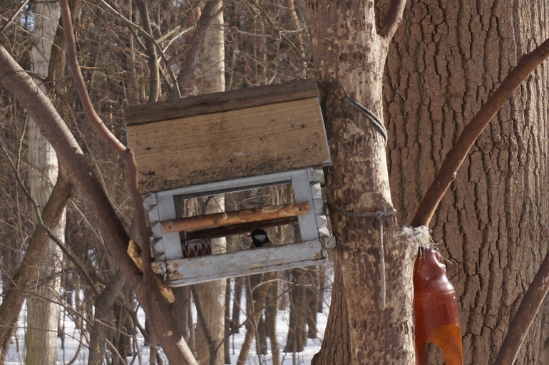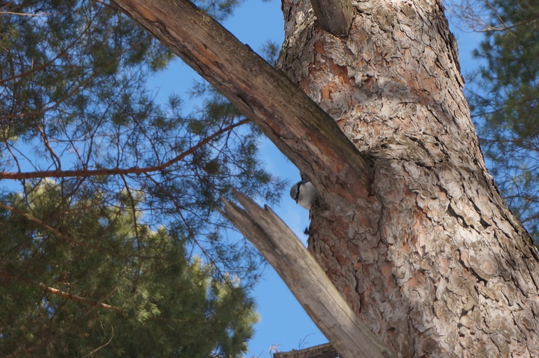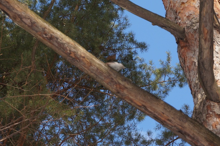 4. Поползень. Маленькая птичка, определили по незнакомому пению. Примечательна тем, что может спускаться по стволу дерева вниз головой.