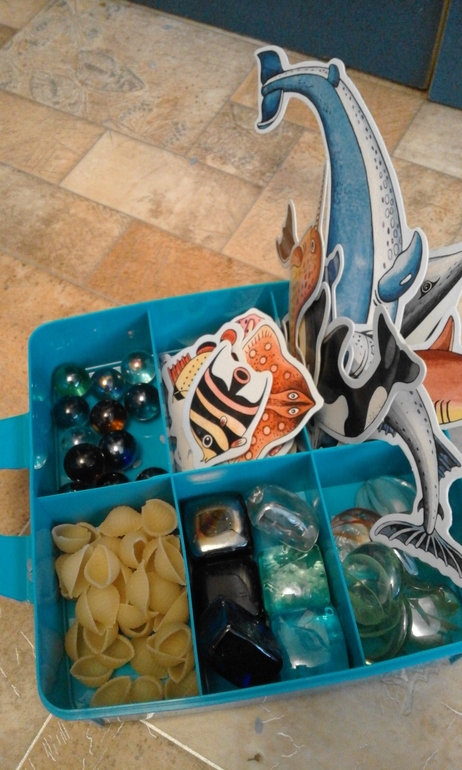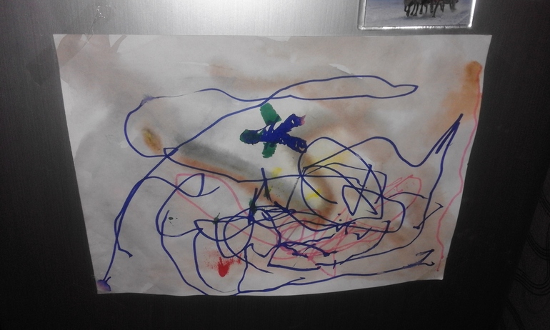 а самой первой картиной в неделе и последней в отчете стала картина с использованием трафаретов морских обитателей и воздушных фломастеров