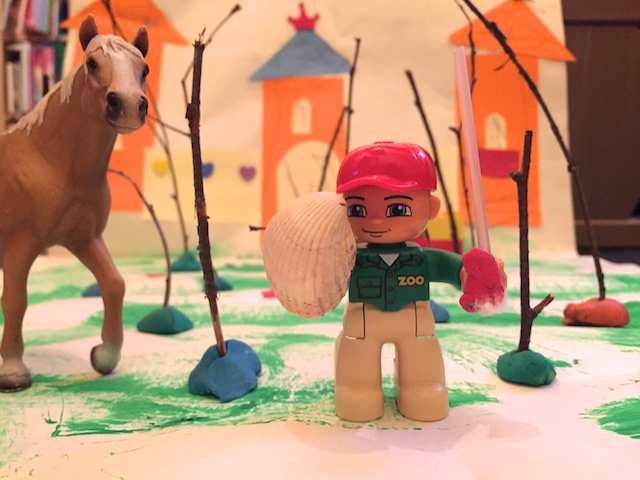 А это принц со своим верным конем скачет на помощь. И, конечно, с ним ракушечный щит и меч из ватной палочки))