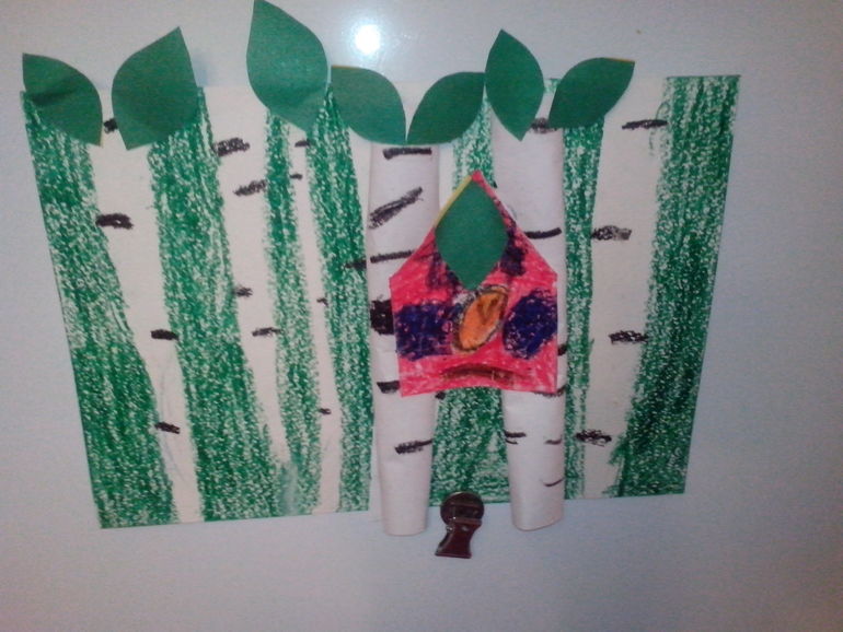Это 3D "Берёзовая роща"))) опять таки с элементами аппликации (несколько стволов берёз сделали объёмными из бумаги и приклеили скворечник))