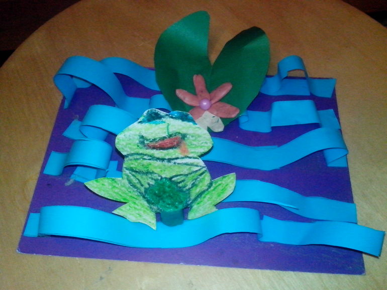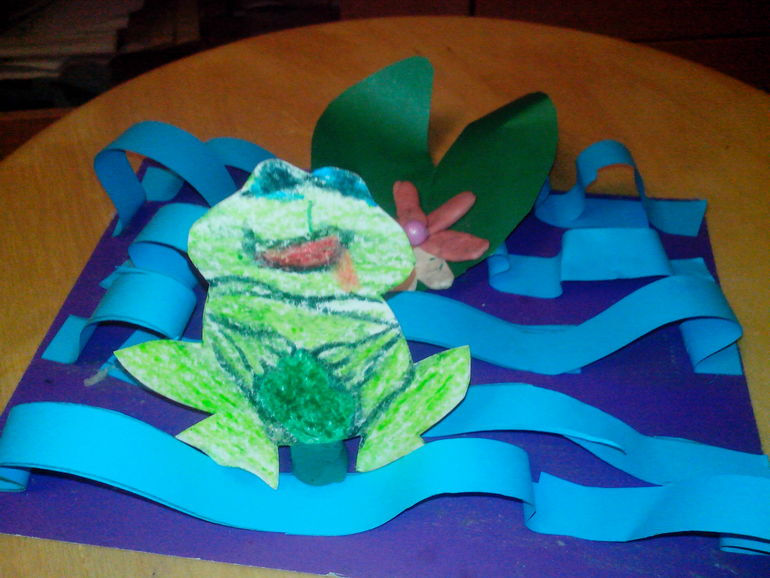 Ну и ещё одна картинка 3D "Лягушка в пруду" (тут и пластилин, и аппликация, и рисование)