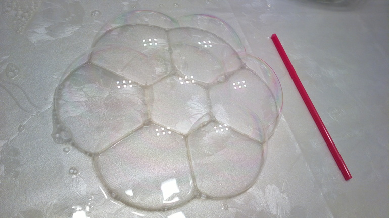 Можно раствором смазать стол и выдувать пузыри на столе.