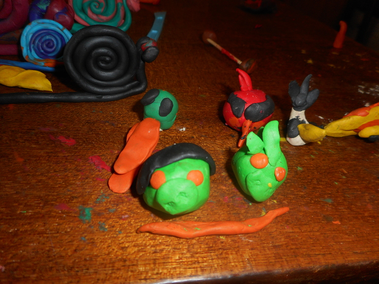 И таких птичек было много... не фоткала потому что: Во первых - ничего особенно ещё не вылепливалось. всё очень друг на друга похоже; Во вторых - Кирилл запускал их из рогатки(((((( многие птички без вести пропали в квартире.... что-то я конечно нашла..... а то что не пропало - ну совсем уже не фотографируемое...