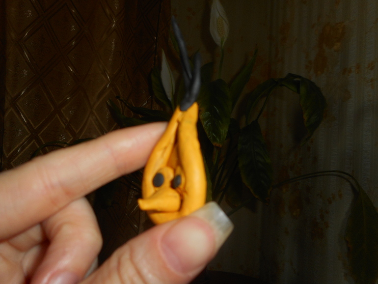 Потом, как то вечером, Кирюша слепил из старого, уже использованного пластилина (новой пачки хватает на час... и на тот момент уже вылепил её). И вот что получилось...