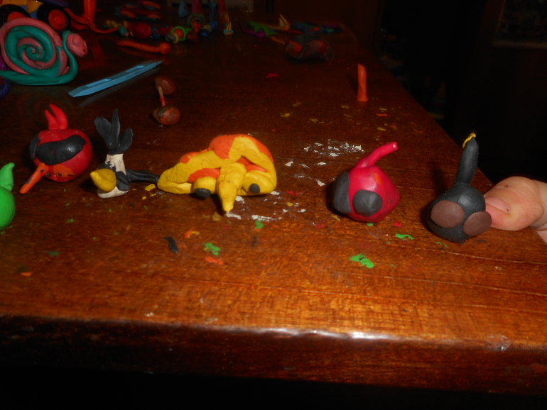 Наши пластилиновые птички из angry birds или Кирюша лепит, часть 2))