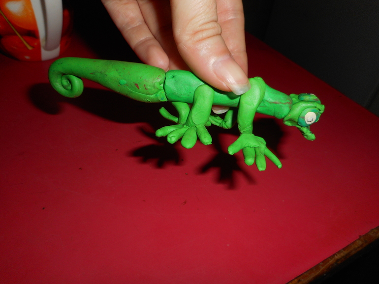 Это его первый опыт))) До этого он никогда не хамелионов, ни ящериц, ни крокодилов, динозавров и т.д. не лепил....