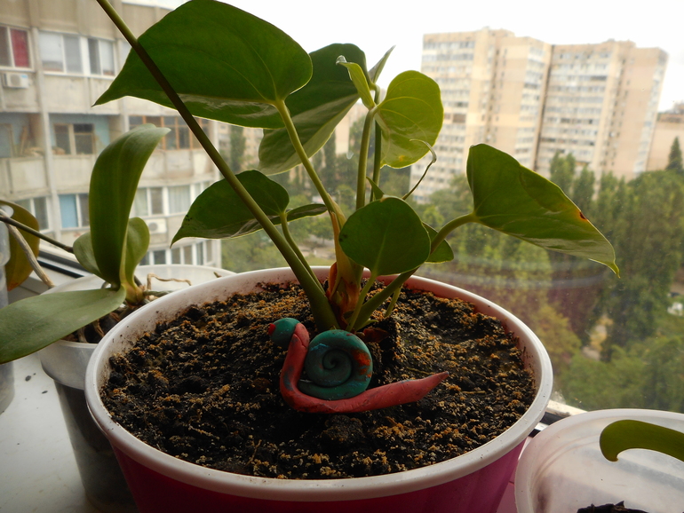 Ещё один сюрприз)) Вышла на лоджию полить цветы, а Кирилл за мной.... и вёл себя как то подозрительно.... Оказывается у меня в цветке новый житель завёлся...