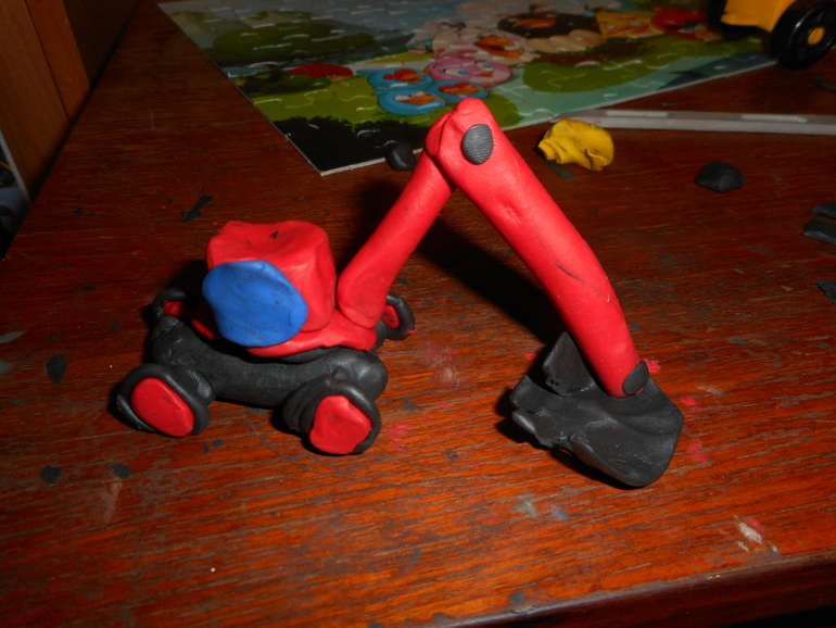 Эскаватор, вчерашний. Папа пришёл с работы с новой пачкой пластилина и почти до 22.30 Кирилл лепил (папа пришёл почти в 9 вечера вчера)...