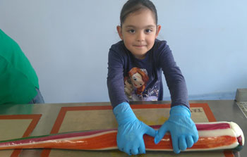 Виталина в двух парах перчаток раскатывала еще теплую "колбаску", постепенно истончая ее.