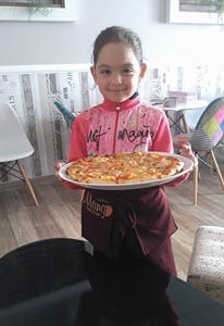 Повар показала, как замесить тесто, как печь пиццу ну и, конечно, как ее раскатать и подобрать начинку. Вита отказалась от колбасы и грибов, зато щедро сдобрила свое творение оливками и сыром.
