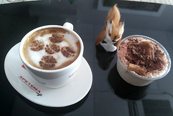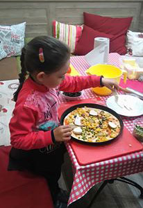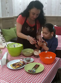 Второй раз были там на изготовлении тирамису. Вообще должны были подойти неск.деток, но что-то, видимо, им помешало и Вита была один на один с поваром.