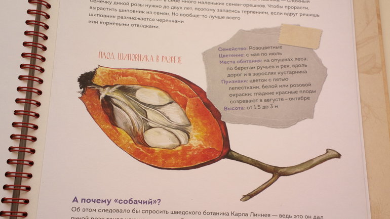 И это так хорошо, что автор и художник осуществили такую задумку- показывать семена, цветы или плоды в разрезе.