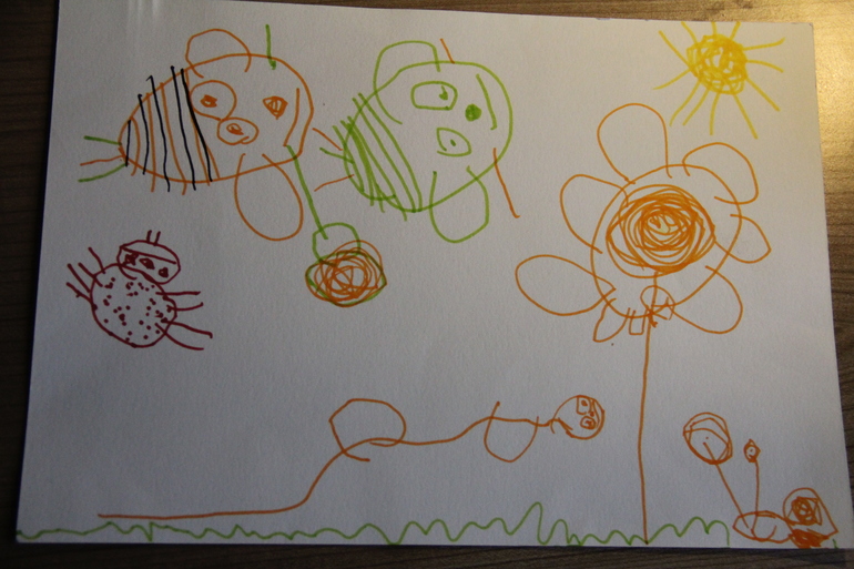 Жалко у меня в этом возрасте никаких рисунков не сохранилось,интересно посмотреть что я калякала в три года)))) у них просто восприятие мира разное... Видно,по верхнему рисунку,что акуратист,а по нижнему-...что поёт хорошо))))
